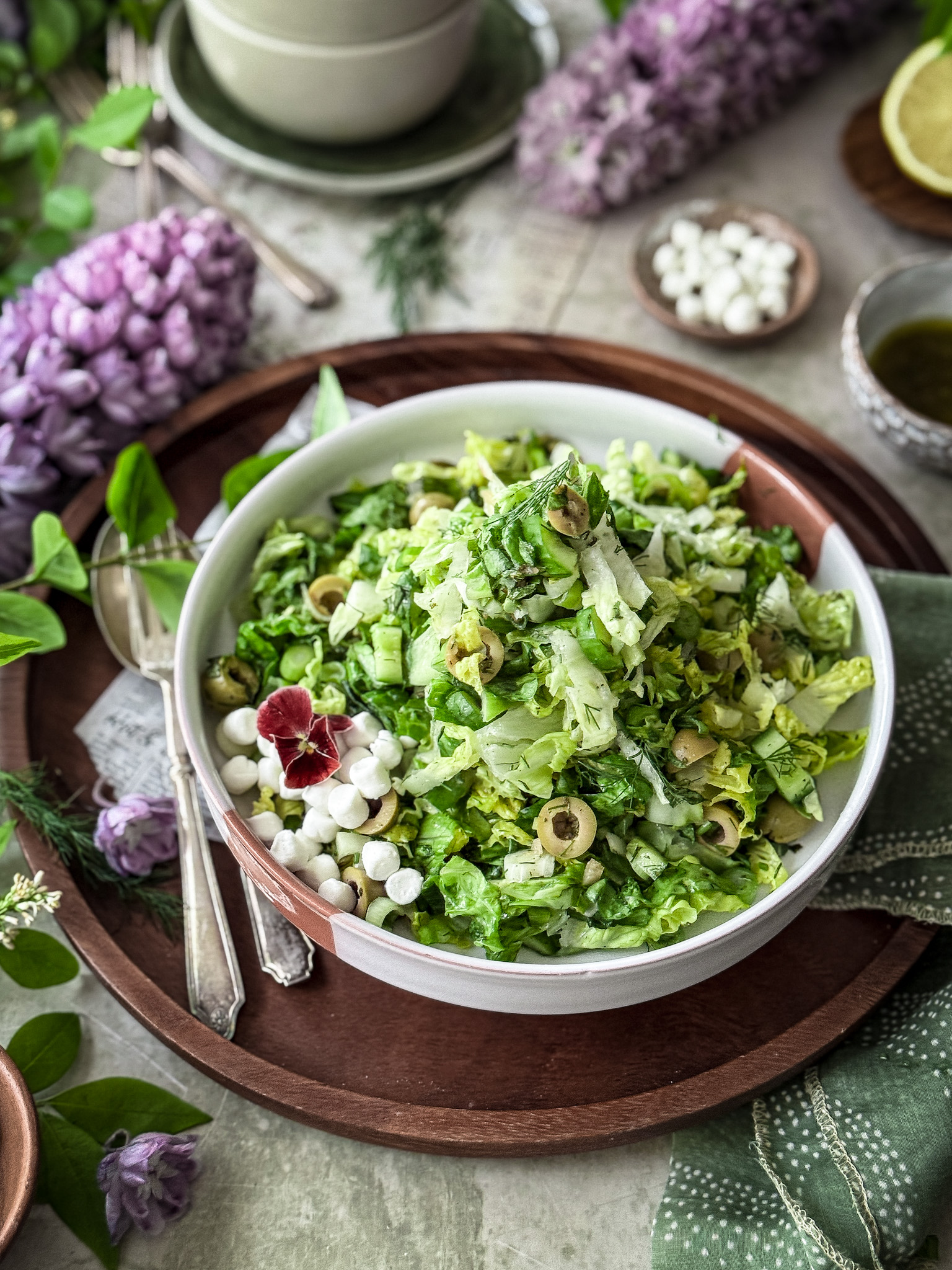 Cool, crisp, and full of brightness — this Greek-style lettuce salad is the kind of dish that quietly earns its place at the table. Made with finely shredded Romanian lettuce, fresh herbs, and a citrus-spiked dressing, it’s refreshing in all the right ways. Light but layered, simple yet full of character.