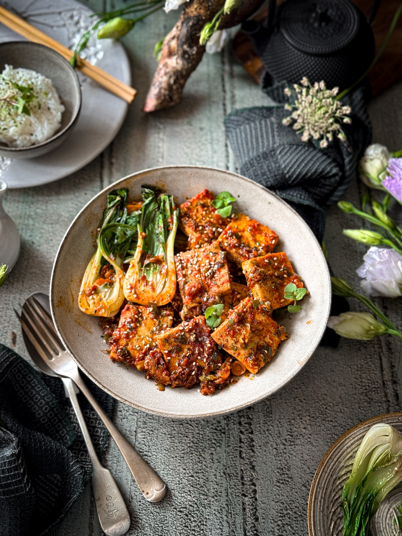 What makes this dish special is its balance — soft tofu that still holds its shape, a sauce that’s rich but not heavy, flavours that feel comforting yet bright. Every bite is layered: a touch of heat, a bit of sweetness, that whisper of sesame that rounds it all out.