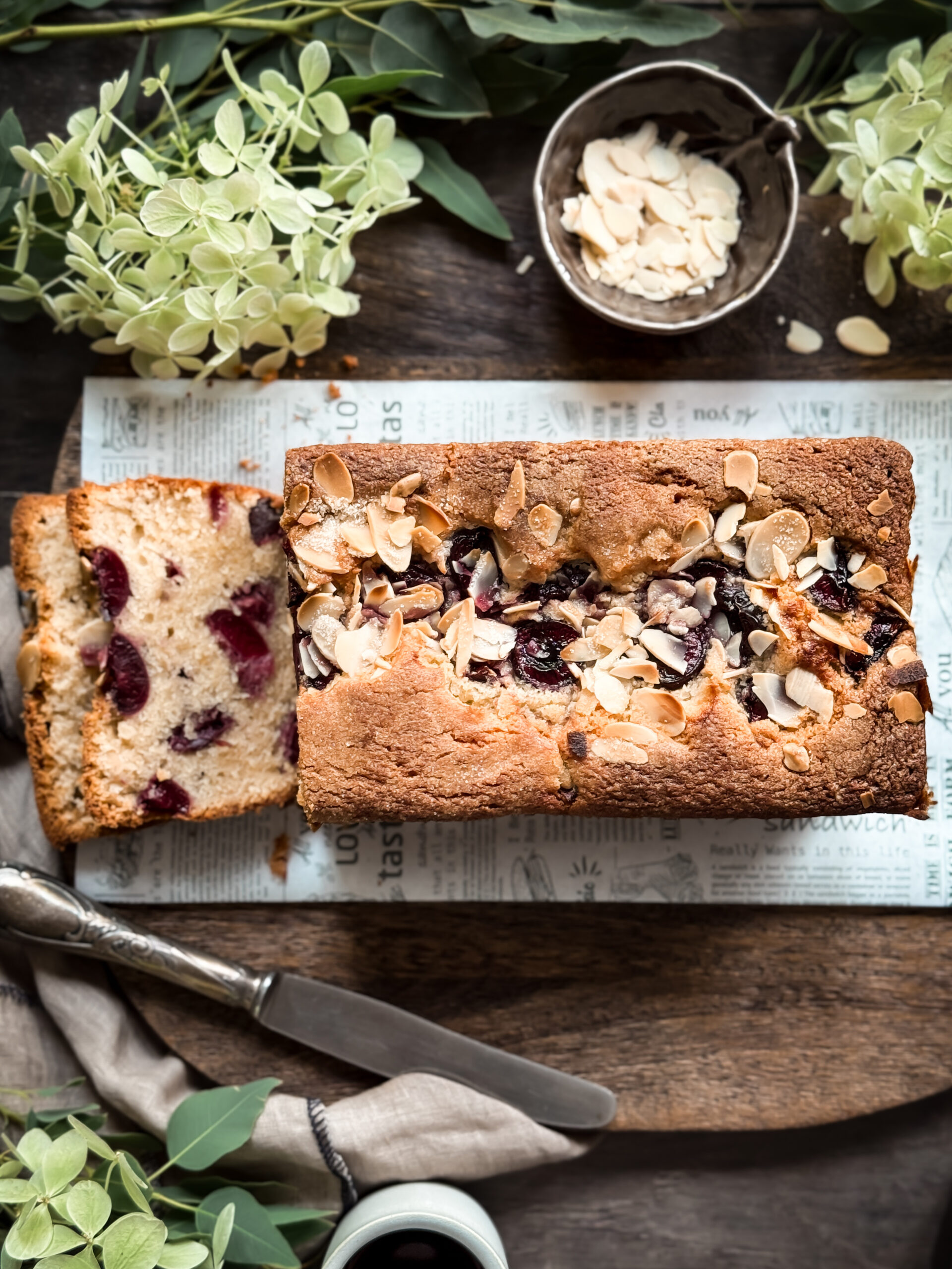 Soft and fluffy almond pound cake, studded with sweet, fresh cherries — just the thing for a summer afternoon tea. There’s something timeless about this kind of loaf. Golden at the edges, delicate in the middle, and full of flavour without ever trying too hard.